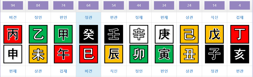 지금은 계사대운입니다. 대운에 계수 정관이 들어 있으며, 남자에게는 자식운을 뜻합니다.